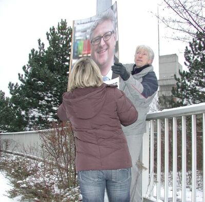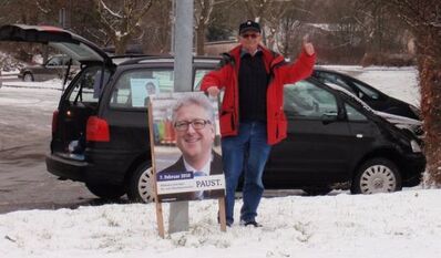 Der Kandidat lässt sich zeigen, wo der Kleister hingehört.